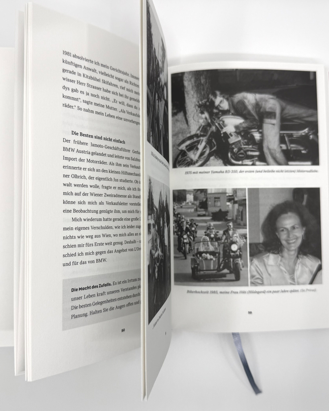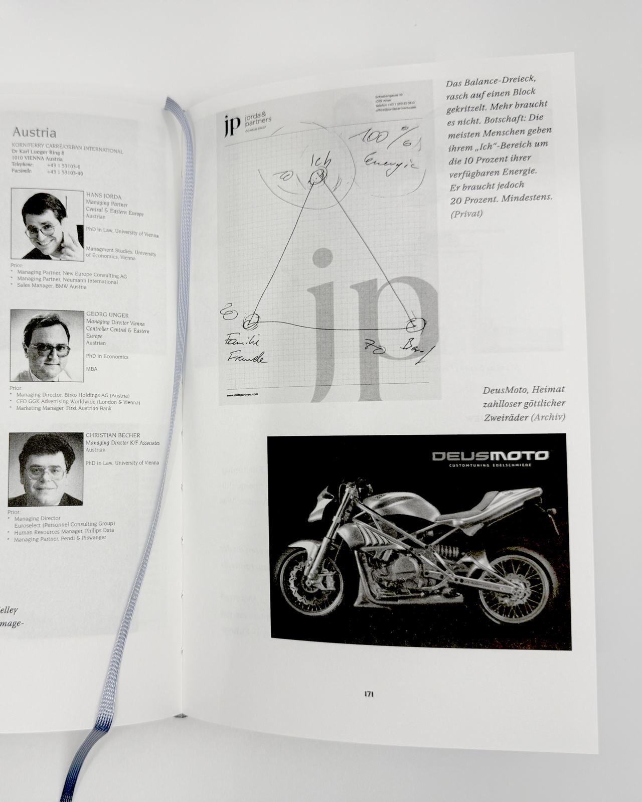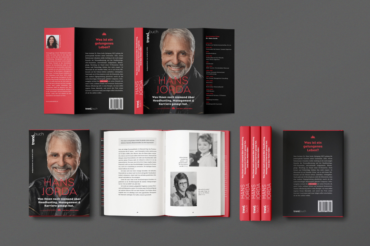Buchdesign für den Juristen Dr. Hans Jorda: eine Biographie über sein bewegtes Leben, mit vielen wertvollen Tipps für Branchenkenner, illustriert mit zahlreichen Fotos und Zeitungsausschnitten aus seinem Archiv – ein starkes Zeitdokument!